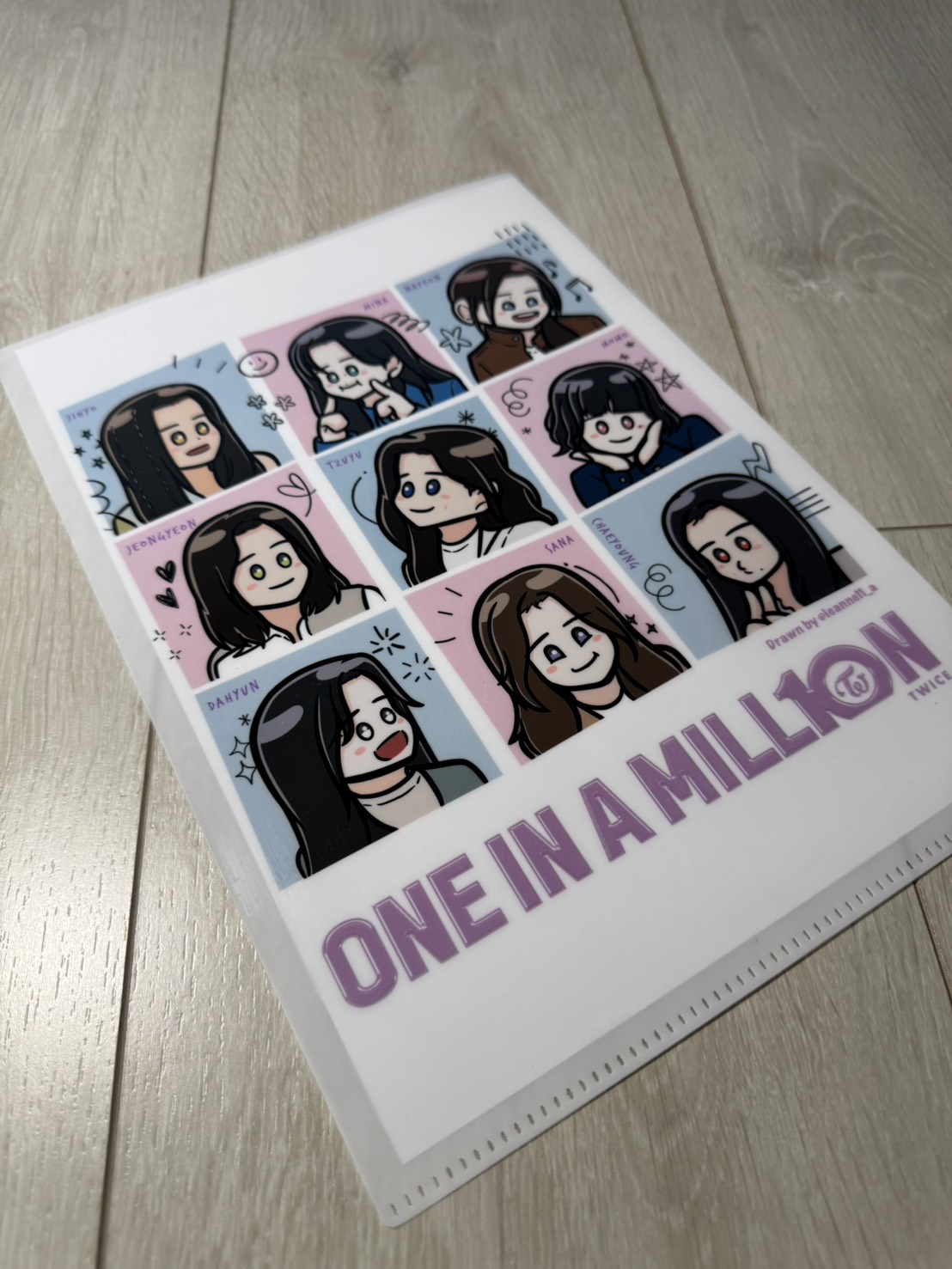 T:我想好宣傳詞了『工作不順遂 遇到畫大餅的老闆 什麼都不幹的同事 手中的資料夾隨你往下砸 砸完再好好抱緊它 讓TWICE給你撐下去上班的力量』